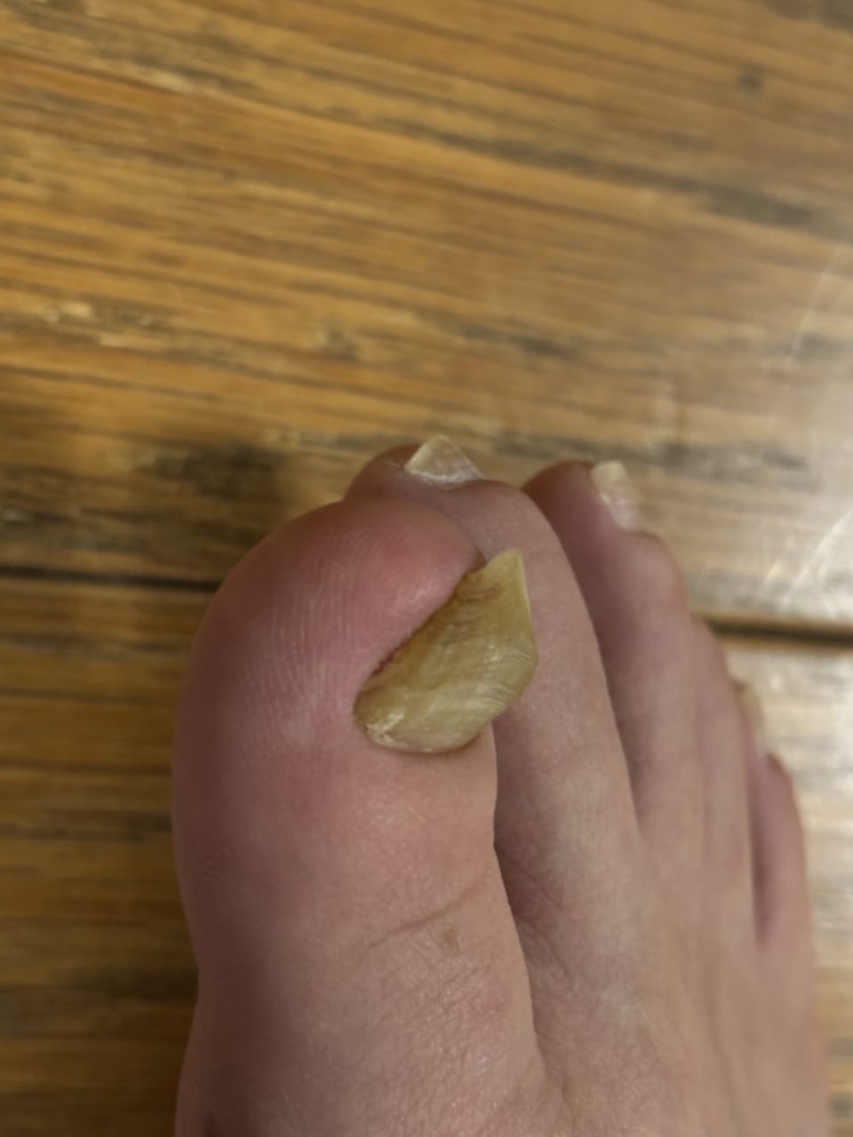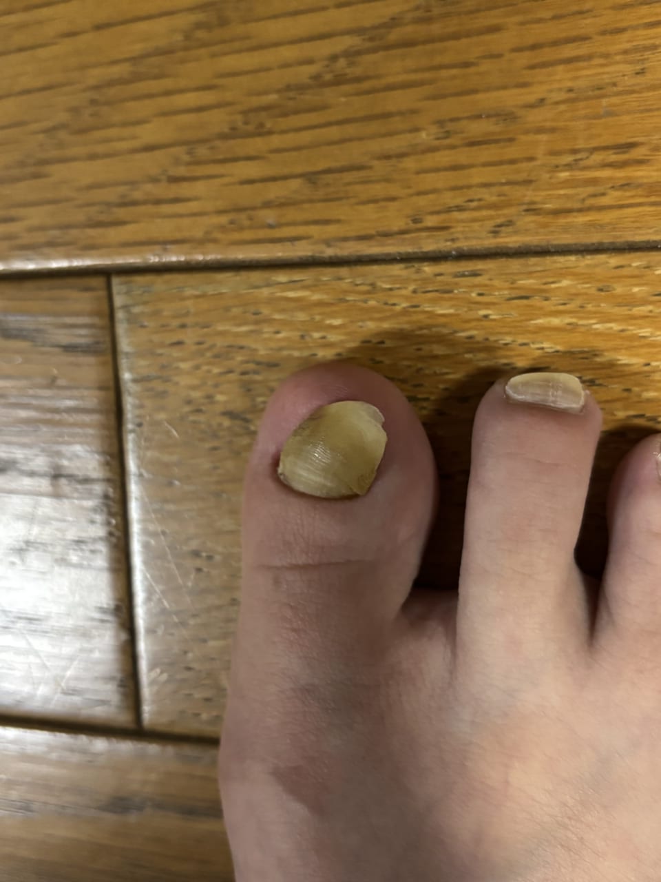 という順序を辿り、結果写真のように分厚い変色した爪になってしまいました。長時間歩くと、分厚い爪が靴で圧迫されて少し痛みま