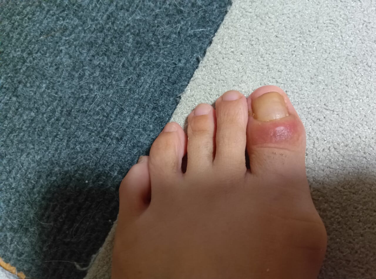 ①巻き爪がひどく、爪が肉に食い込んでいるせいで正常に爪が伸びず、根本に爪が溜まり(?)が痛くなっている。